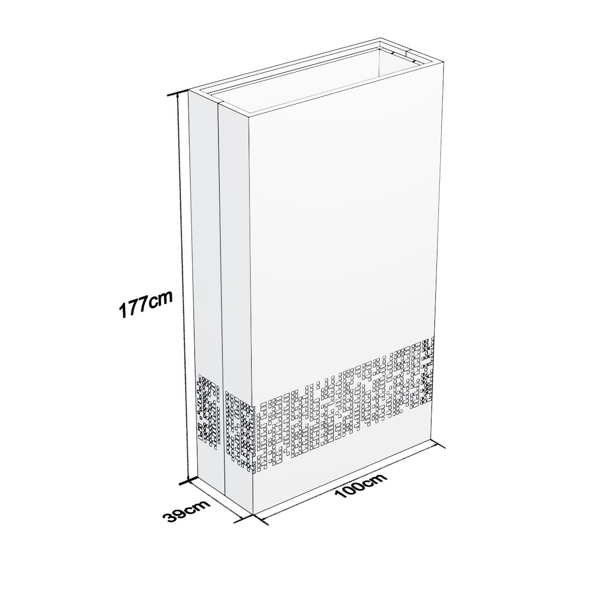 Nowoczesna donica ogrodowa wykonana ze stali, to połączenie minimalistycznego designu i trwałości. Charakterystyczny ażurowy wzór nadaje jej lekkości i wyjątkowego wyglądu, dzięki czemu doskonale pasuje zarówno do nowoczesnej architektury, jak i klasycznych ogrodów.